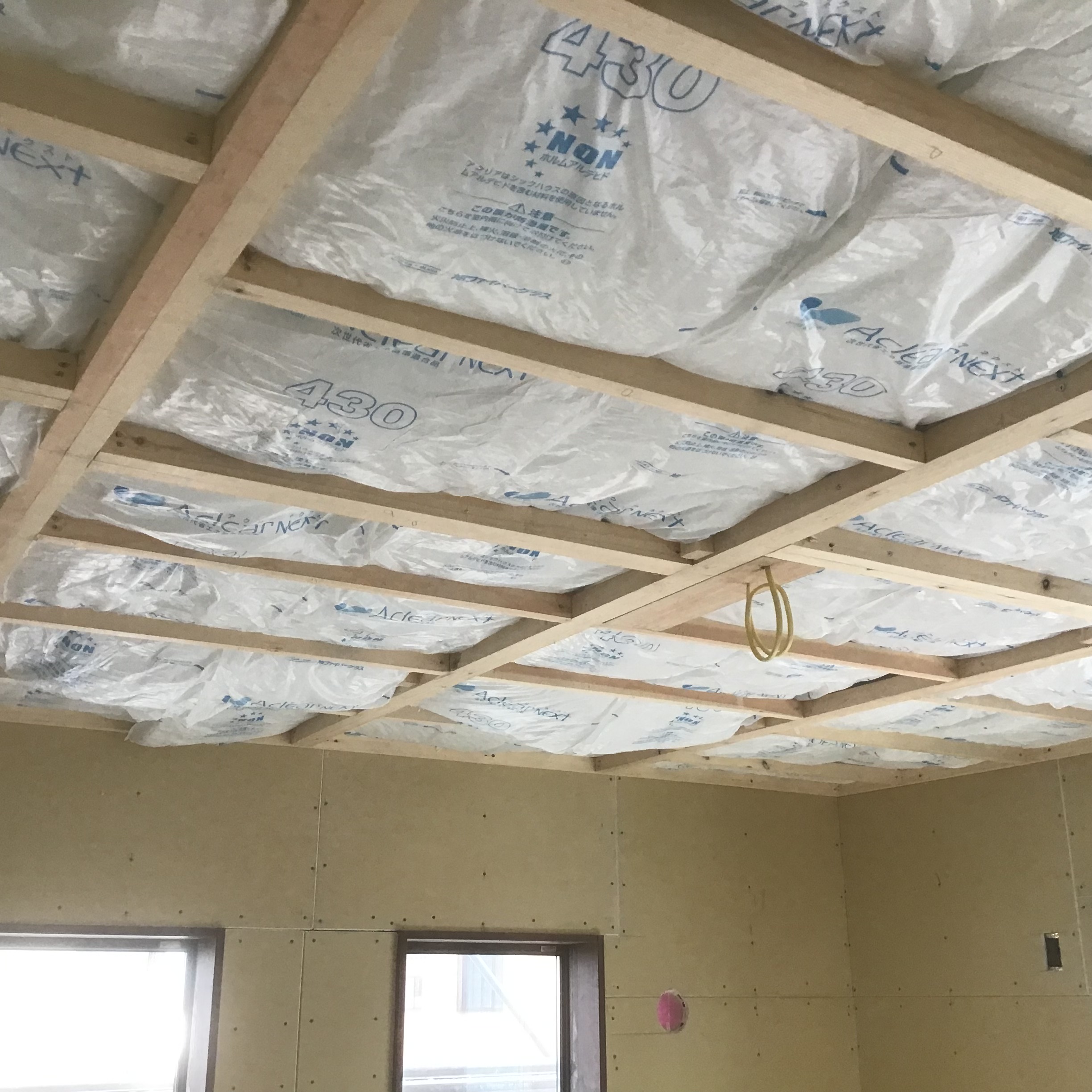 天井の野縁を施工しては、壁の中に気流ができますので、